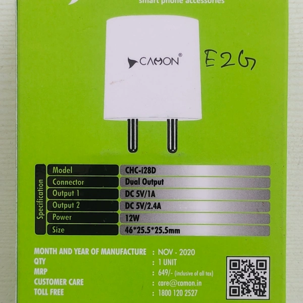 SMART IC, Fast Charging , Comfort Grip,Unique design, This product come with 1 year manufacturing warranty, warranty claim with manufacturing package box, warranty claim only manufacturing defect, warranty claim form authorised service centre or distributor, This Charger come with free V8 cable,