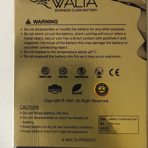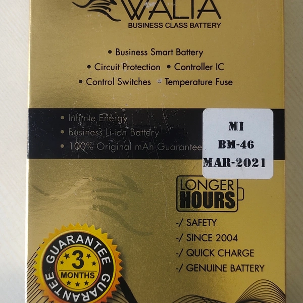 This Walta battery model bm-46 this battery comfortable with mi note 3, This product come with 3 months manufacturing warranty, warranty cover only manufacturing defect, warranty not covered in waterlog, overcharge, physical damage, battery swells, warranty claim with manufacturing package box.