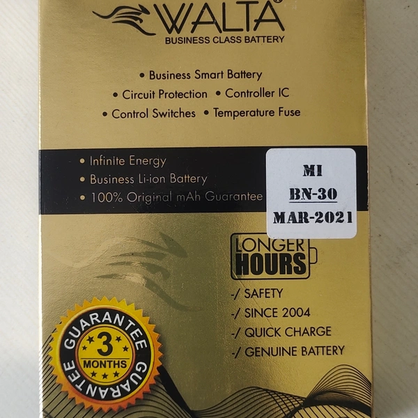 This Walta battery model bn-30 this battery comfortable with mi 4A, This product come with 3 months manufacturing warranty, warranty cover only manufacturing defect, warranty not covered in waterlog, overcharge, physical damage, battery swells, warranty claim with manufacturing package box.