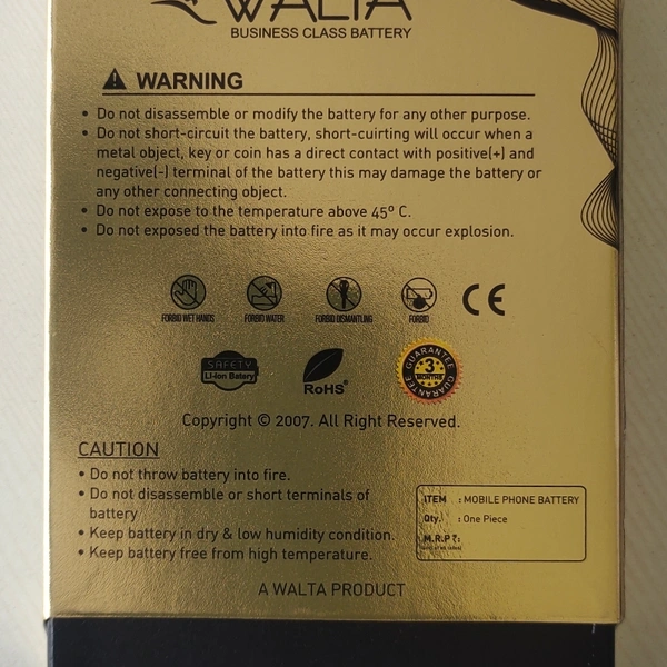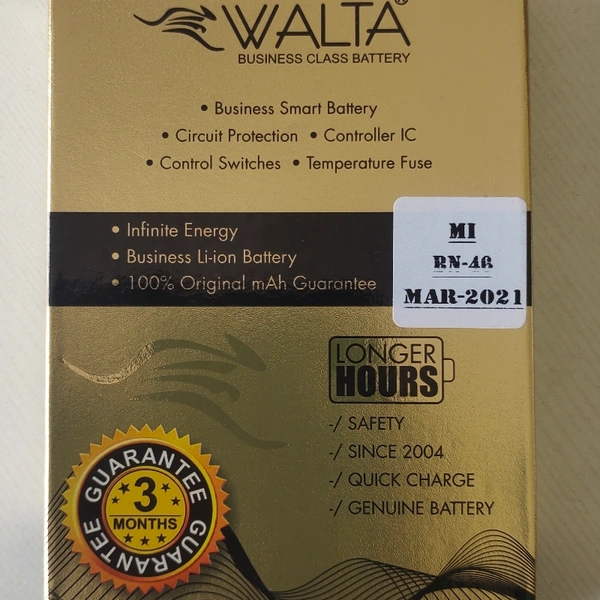This Walta battery model BN-46, this battery comfortable with mi Redmi 7, Redmi note 8, Redmi note 6 , This product come with 3 months manufacturing warranty, warranty cover only manufacturing defect, warranty not covered in waterlog, overcharge, physical damage, battery swells, warranty claim with manufacturing package box.